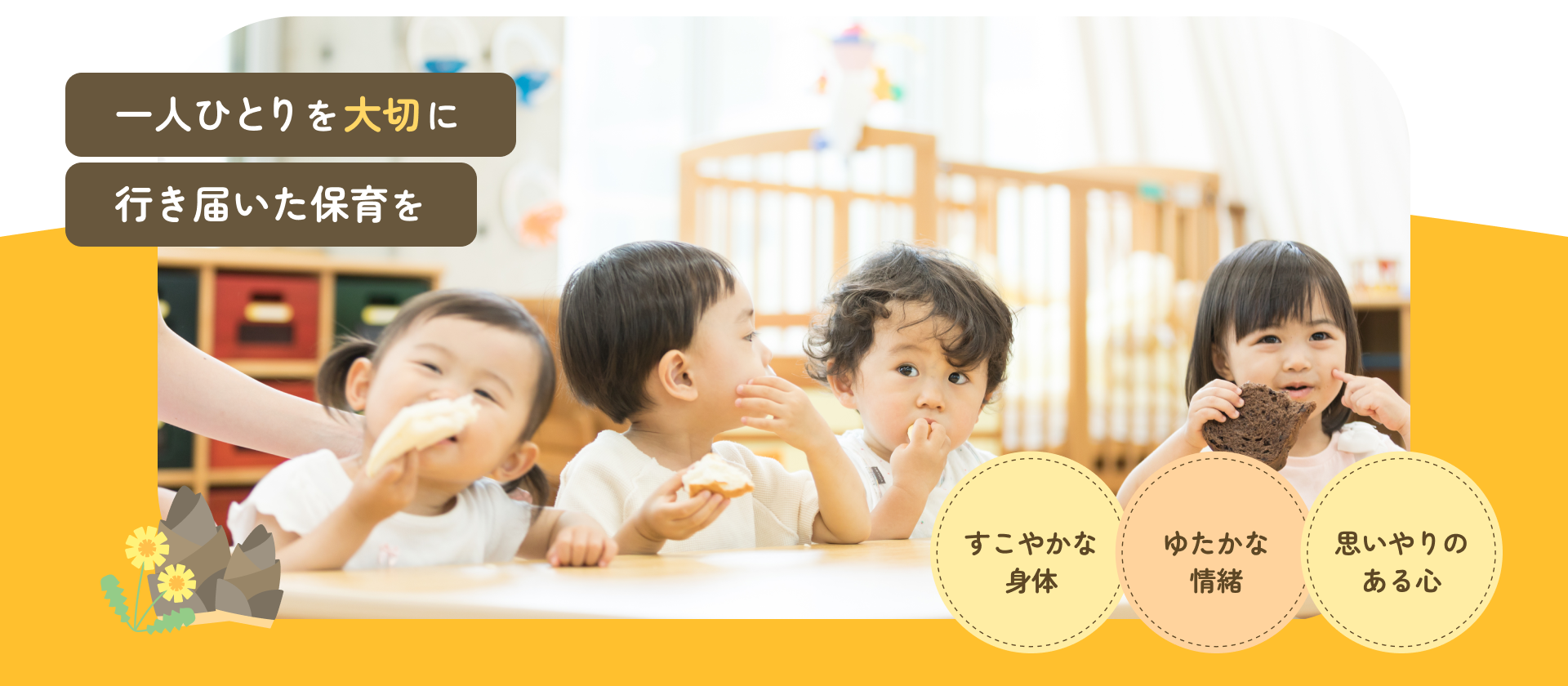 未来を担う子ども達が、集団の中で生き生きと保育されることによって、発達がかなえられる保育所づくりを行い、地域の父母の労働を支え、地域社会の発展に寄与することを目的としています。